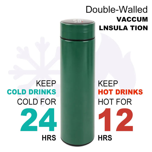 Smart Stainless Steel Insulated Water Bottle – 500ml Vacuum Flask with LED Temperature Display, 5 Color Options
