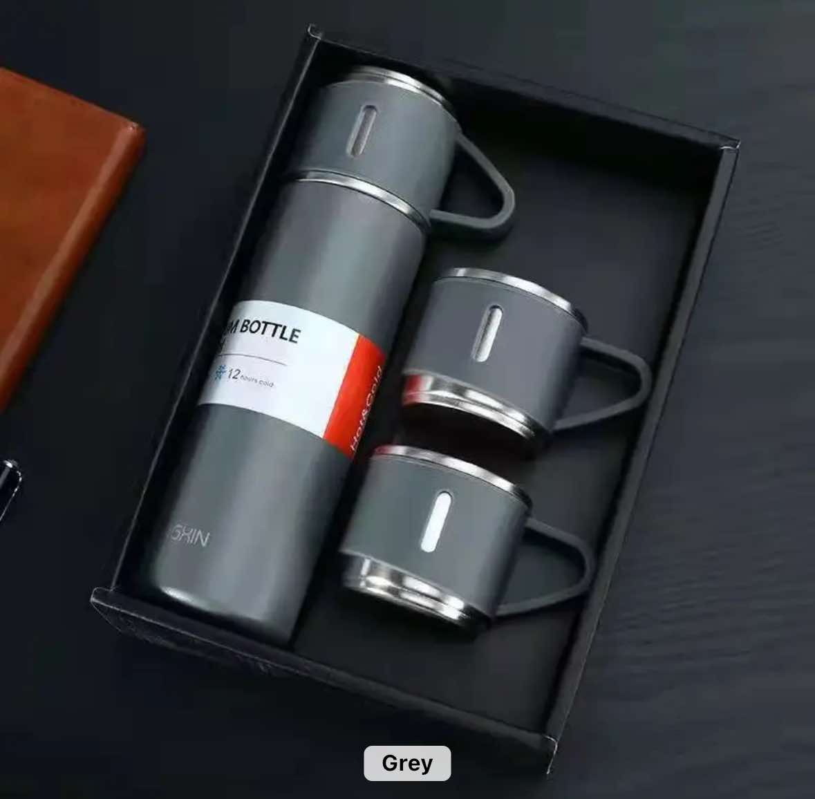 Whether you're student, business professionals, travelers, coffee lovers, stay hydrated with the 500ml Tumbler Vacuum Insulated Flask Set Stainless Steel Style with 3 pcs 240 mL coffee mugs.